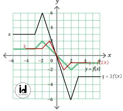 Grafik yang sesuai dari y = 3f(x) dan y = f(2x):